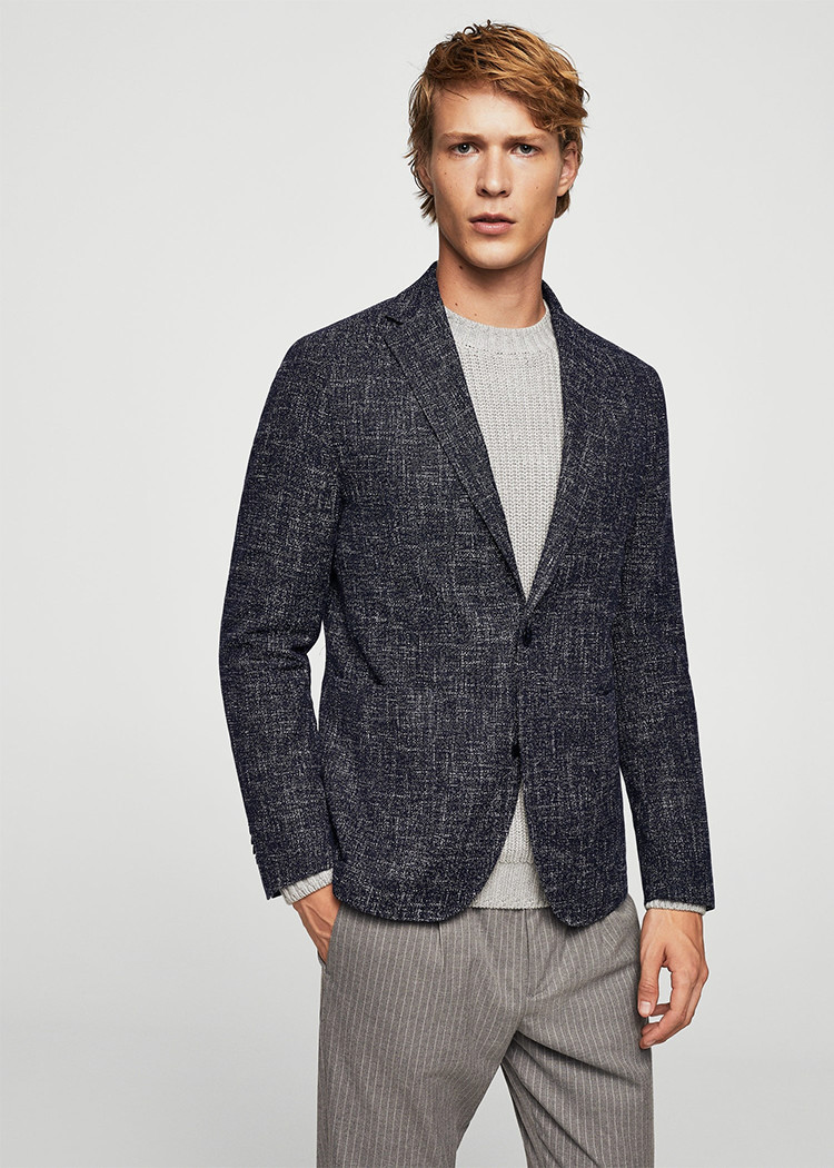 Slim fit flecked cotton blazer